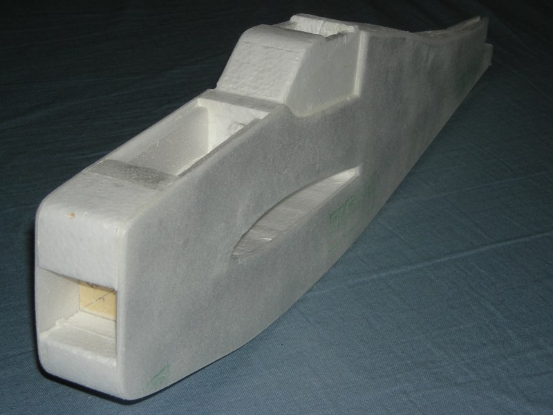 La costruzione si basa sul progetto di Giacomo Righi, modificato leggermente. Per dare pių corpo alla fusoliera, che nel progetto era formata solo da 3 strati di Depron, ho usato un foglio di polistirolo dallo spessore di 4 cm in modo da nascondere l'elettronica al suo interno. Ho rivestito il polistirolo con uno strato di Depron da 3 mm ai 2 lati in modo da irrobustire il tutto. Le ali sono in Depron da 3 mm piegato su se stesso con il longherone in doppio Depron da 6 mm che contribuisce a dare il profilo. I piani di coda sono in Depron da 3 mm. Tutta la struttura č irrobustita con nastro fibrato e nastro adesivo da pacchi nei punti pių critici. Ho aggiunto il comando del timone direzionale, non previsto nel progetto, rilevatosi del tutto superfluo per il tipo volo. La colorazione č stata fata con vernice in bomboletta.