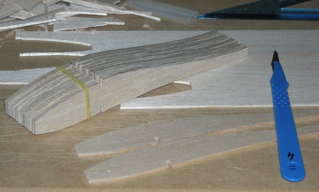 Le centine sono in balsa da 1,5 mm, tranne la centina d'estremità, da 2 mm che