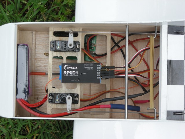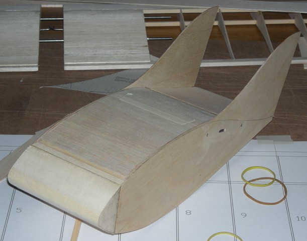 La fusoliera ha le fiancate in compensato da 1,5 mm, qualche travetto in tiglio